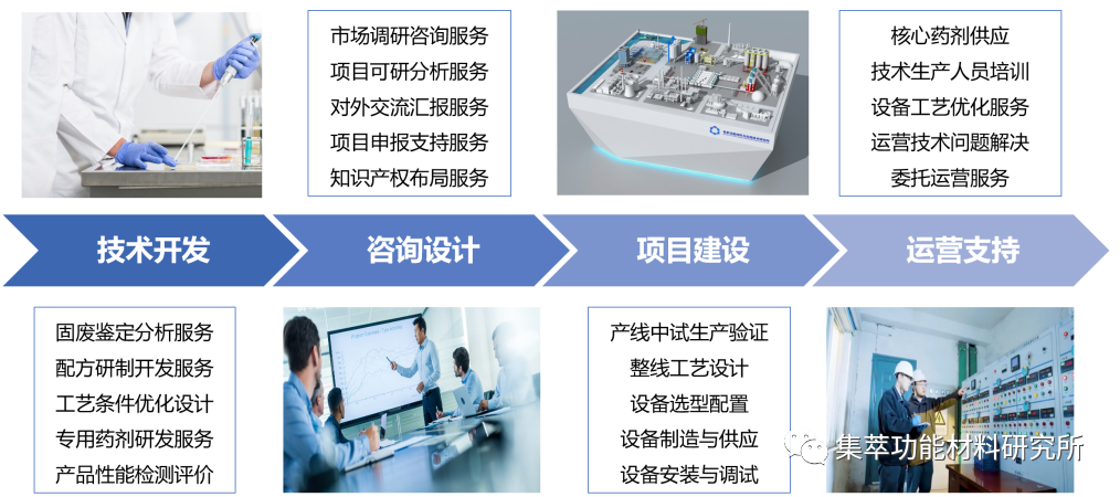 集萃功能材料所環(huán)保平臺(tái)以市場為出發(fā)點(diǎn),以客戶需求為中心,結(jié)合項(xiàng)目的實(shí)際情況,提供集技術(shù)開發(fā)、咨詢設(shè)計(jì)、項(xiàng)目建設(shè)、運(yùn)營支持為一體的全方位技術(shù)支撐和全流程解決方案,多維度保障項(xiàng)目落地和持續(xù)運(yùn)行,為客戶創(chuàng)造顯著的經(jīng)濟(jì)效益。