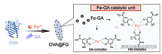 由天然來源的沒食子酸(GA)與Fe3+離子形成的金屬-多酚網(wǎng)絡(luò)(MOF)自發(fā)吸附在模型抗原卵清蛋白(OVA)模板上而形成納米顆粒,用于腫瘤納米疫苗。
