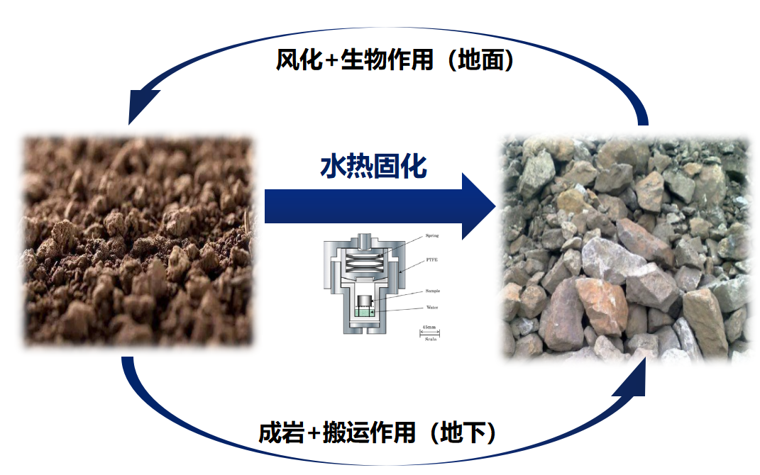 “水熱固化技術(shù)”體現(xiàn)了模擬自然的理念,即模擬地下堆積巖的成巖機理,在實驗室或工業(yè)條件下提供合適的溫度壓力條件,促使原料發(fā)生迅速成巖轉(zhuǎn)變,制備出高強度、低環(huán)境負荷的新型多功能材料。該技術(shù)反應(yīng)溫度低(≤200℃),故生產(chǎn)能耗小,過程中也不產(chǎn)生新污染物,并且克服了高溫合成條件下材料常見的晶形轉(zhuǎn)變、分解、揮發(fā)等問題,是一種低碳綠色清潔的固廢資源化技術(shù),具有固廢利用率高、技術(shù)應(yīng)用面廣、產(chǎn)品附加值高、生產(chǎn)過程低碳環(huán)保等顯著優(yōu)勢。