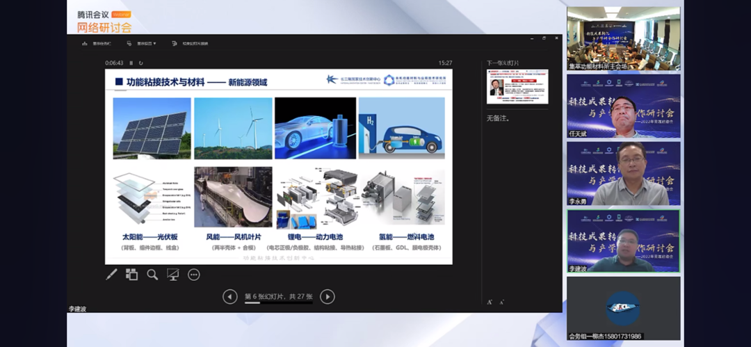 本次會(huì)議上,有機(jī)功能材料與應(yīng)用技術(shù)研究所(以下簡(jiǎn)稱功能材料所)各平臺(tái)負(fù)責(zé)人集中發(fā)布了涵蓋新材料、環(huán)保、低碳、生物醫(yī)藥及化妝品、功能薄膜、粘接材料等領(lǐng)域的一系列核心技術(shù)成果及解決方案,并邀請(qǐng)了不同身份和不同領(lǐng)域的嘉賓,圍繞科技成果轉(zhuǎn)化和產(chǎn)學(xué)研合作的新模式、新路徑,分享了他們探索實(shí)踐的心得體會(huì)與成功案例,會(huì)議以騰訊網(wǎng)絡(luò)研討會(huì)形式召開(kāi)并通過(guò)微信視頻號(hào)平臺(tái)轉(zhuǎn)播,受到了廣泛關(guān)注,觀看與參與人數(shù)達(dá)近千人次,反響較好。