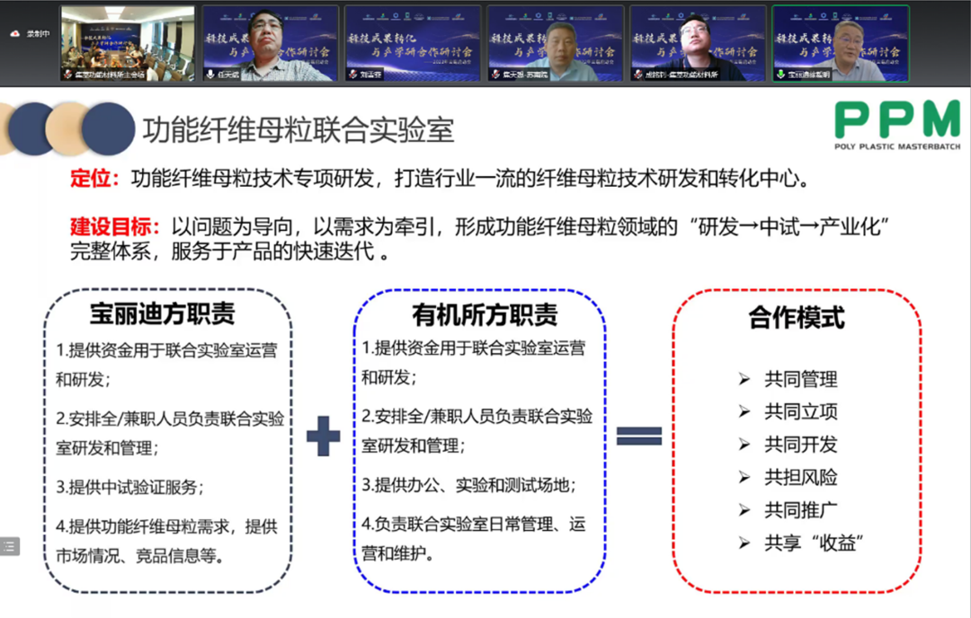 蘇州寶麗迪材料科技股份有限公司董事長(zhǎng)徐毅明分享了與功能材料所共建聯(lián)合實(shí)驗(yàn)室促進(jìn)科技創(chuàng)新與技術(shù)推廣的過(guò)程和模式,基于雙方需求與能力,優(yōu)勢(shì)互補(bǔ),快速推進(jìn),形成功能纖維母料的研發(fā)、中試、產(chǎn)業(yè)化的完整體系,服務(wù)于產(chǎn)品的快速迭代。
