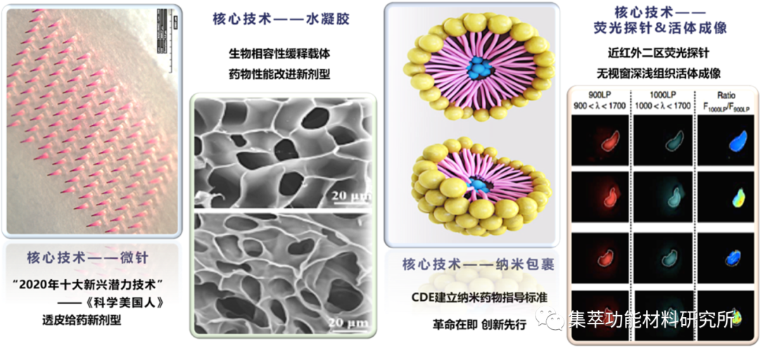 功能材料所生物醫(yī)藥平臺(tái)致力于成為經(jīng)皮醫(yī)療技術(shù)的領(lǐng)導(dǎo)者,深耕經(jīng)皮遞送技術(shù),搭建納米材料、凝膠、微針等載體核心技術(shù)平臺(tái),秉承“從臨床中來,到臨床中去”的發(fā)展理念,面向臨床、前沿藥物提出的藥物精準(zhǔn)遞送需求,創(chuàng)新經(jīng)皮遞送解決方案,自主研發(fā),并攜手醫(yī)生、藥企進(jìn)行臨床驗(yàn)證,最終回到臨床中惠及百姓。以臨床為起點(diǎn)與終點(diǎn)的閉環(huán)方式,正越來越成為創(chuàng)新藥物開發(fā)的一種新范式,將有力豐富傳統(tǒng)基于結(jié)構(gòu)改造、化合物篩選等傳統(tǒng)創(chuàng)新藥產(chǎn)生方式。