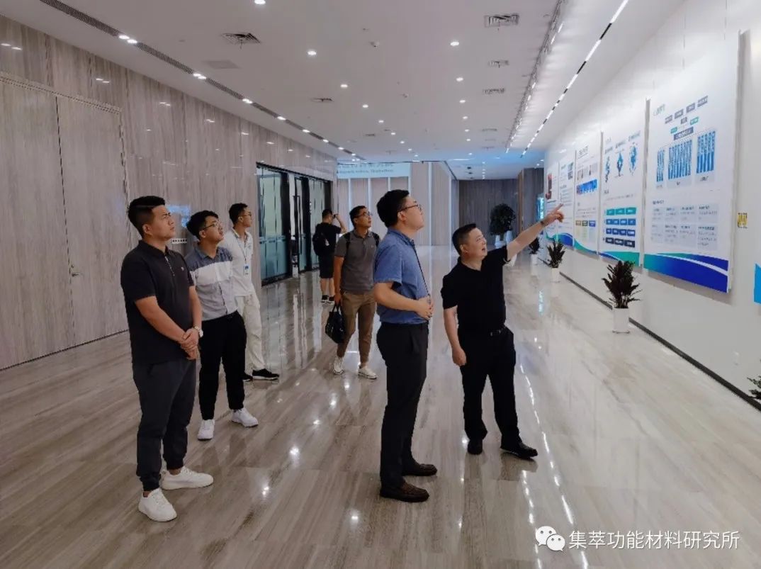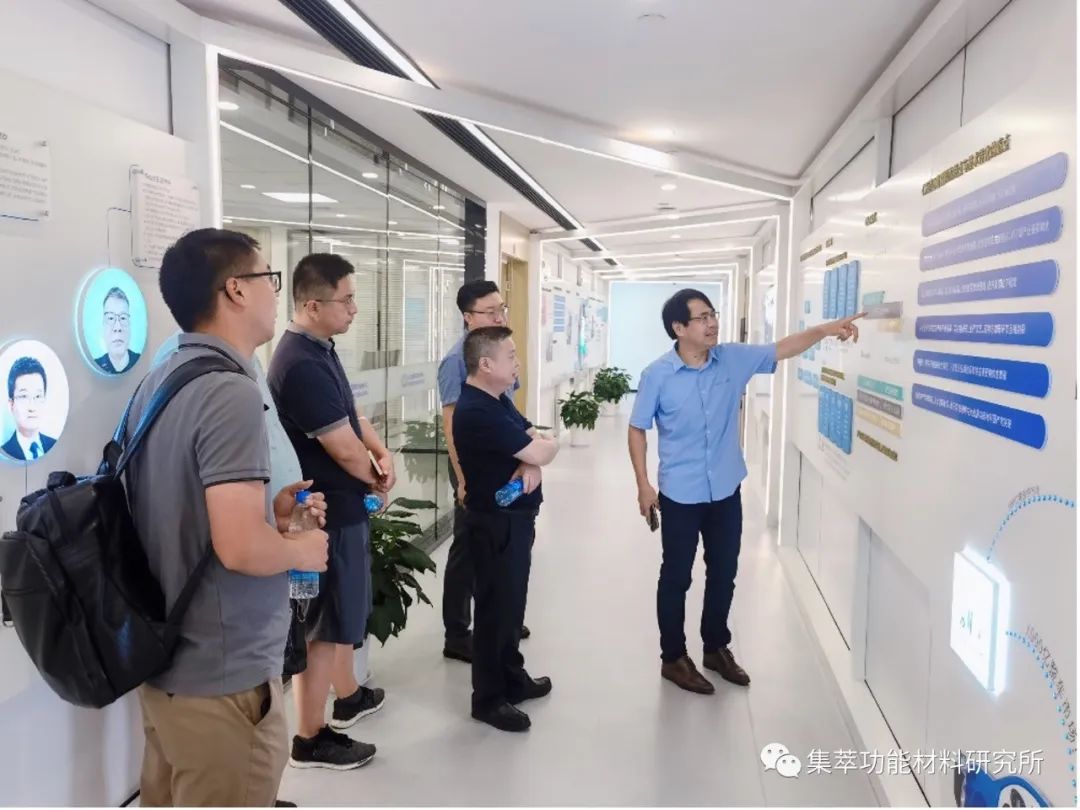 參觀過程中,任天斌所長詳細介紹了功能材料所的發(fā)展歷程、價值理念、科創(chuàng)模式及人才培養(yǎng)等內(nèi)容,陳永輝院長對功能材料所構(gòu)建的技術(shù)成果轉(zhuǎn)化、科技項目孵化和雙創(chuàng)人才培養(yǎng)三位一體模式高度認可。