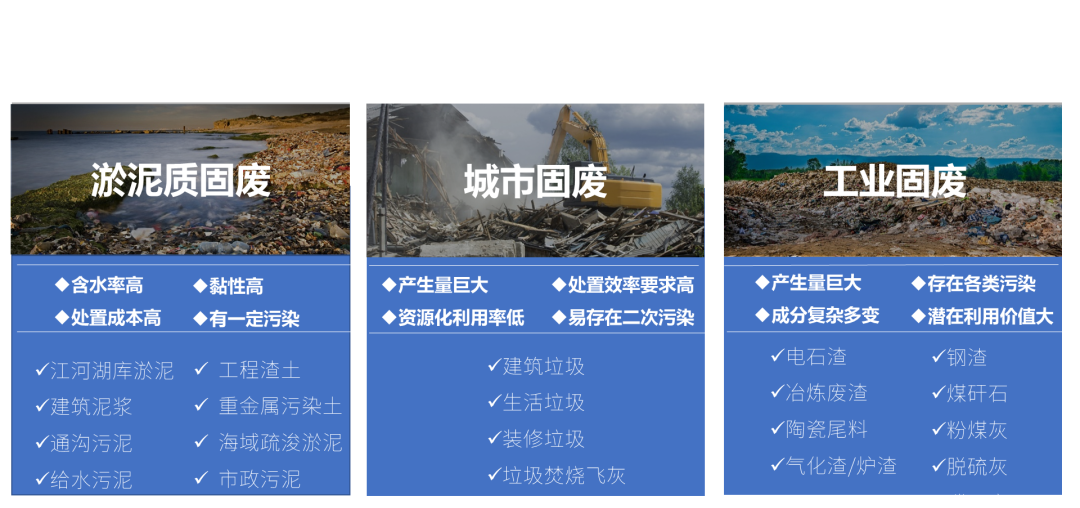 與此同時(shí),全國積極推進(jìn)“無廢城市”建設(shè),對各類固廢(淤泥質(zhì)固廢、城市固廢、工業(yè)固廢)處置提出了更高的需求——持續(xù)推進(jìn)固廢高值化綠色化循環(huán)利用,延伸固廢產(chǎn)業(yè)鏈成為各個(gè)城市綠色發(fā)展的重心。