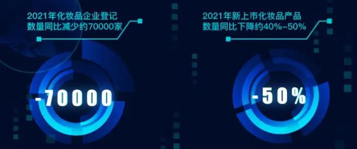中國是世界上第二大化妝品消費(fèi)市場。2021年1月1日《化妝品監(jiān)督管理?xiàng)l例》正式施行后,截至2021年底,全國共約有1.5萬家化妝品注冊人備案人、境內(nèi)責(zé)任人和生產(chǎn)企業(yè)完成企業(yè)信息資料登記,較2020年減少約7萬多家。新品數(shù)減少40%-50%。需求端未減,供給驟減。這意味著整個(gè)行業(yè)正在洗牌。